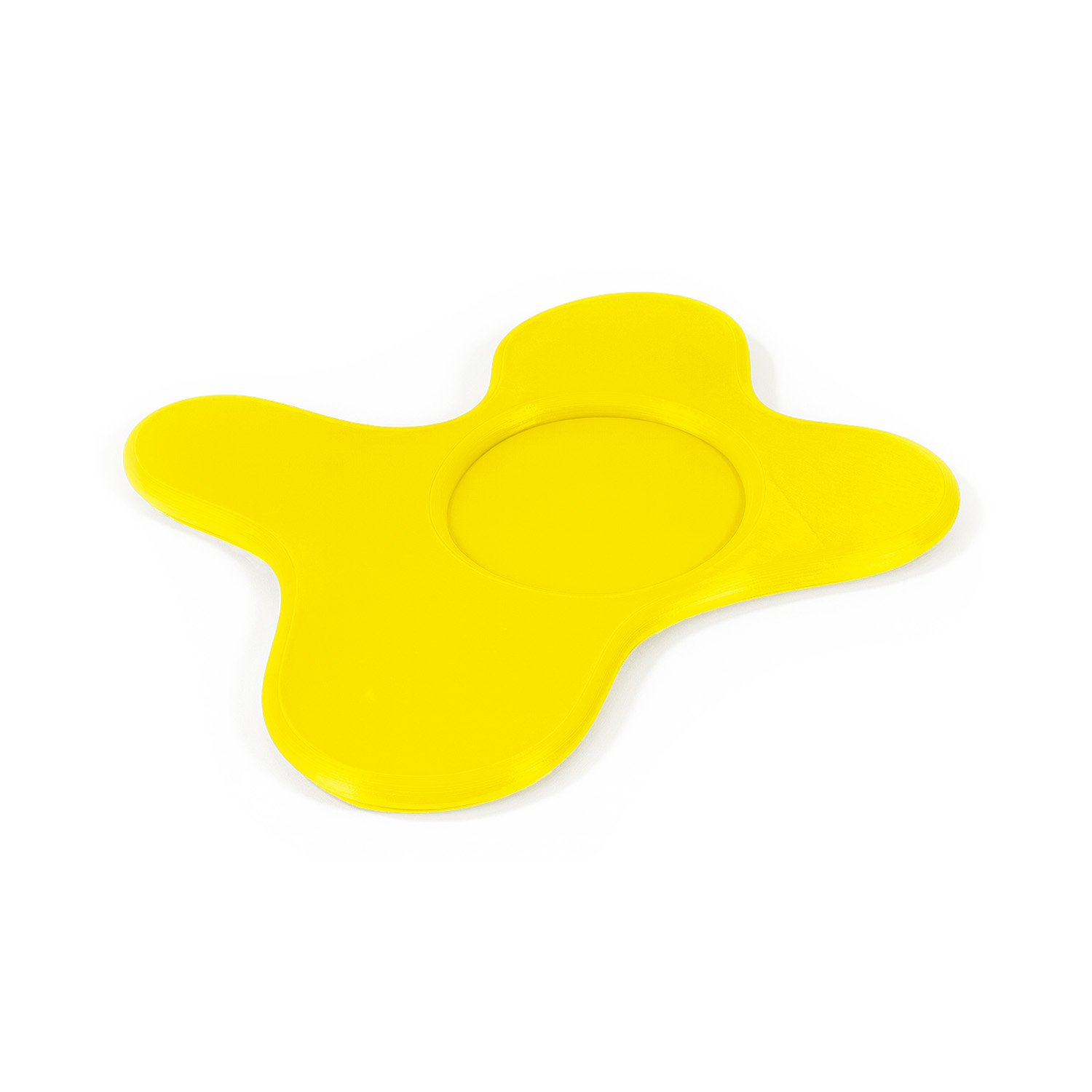 il peut par exemple accueillir une tasse de thé bien chaude, accompagner une bouteille au centre de la table, recueillir le bazar du quotidien sur une commode, servir de support à des lancers de dés sur une table de jeu un peu trop animée, ou simplement exister tranquillement sur une étagère comme une présence joyeuse.
